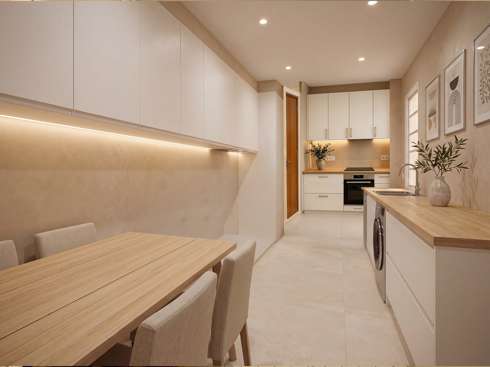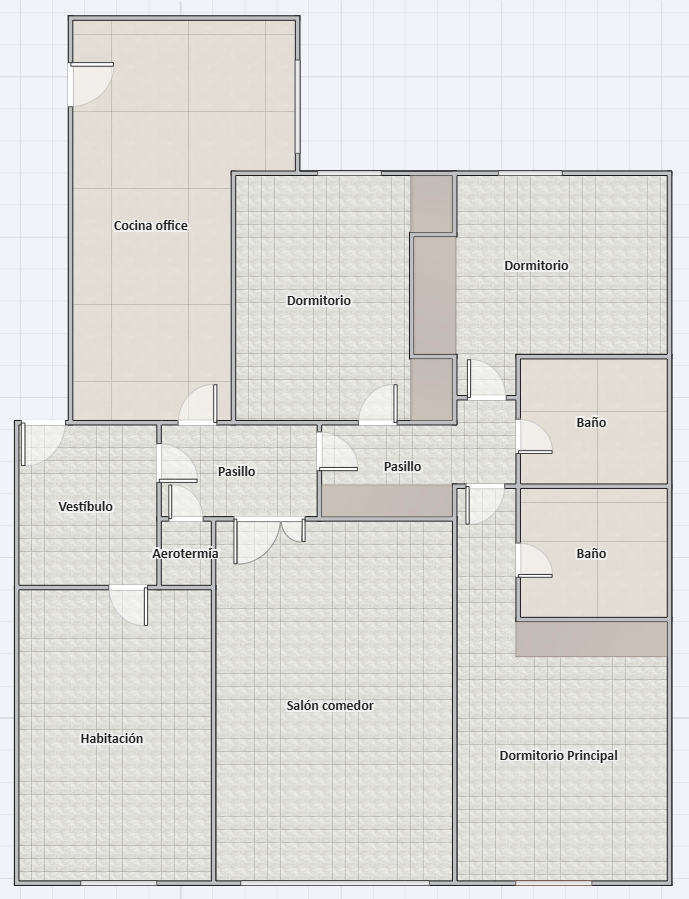 Está distribuido en cuatro habitaciones, una de ellas junto al salón, con acceso independiente si se quisiera utilizar como despacho profesional donde recibir clientes o pacientes, o con posibilidad de utilizar para ampliar el salón. El dormitorio principal tiene un cuarto de baño dentro del mismo. La cocina es realmente amplia, y con una zona de office donde puede sentarse la familia al completo.